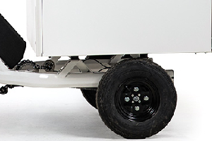 Fabricado íntegramente en aluminio, tanto el chasis como la caja, proporcionando al vehículo un peso muy reducido. Sus ruedas traseras, extra anchas, le aportan comodidad y robustez, con un bajo coste de mantenimiento.